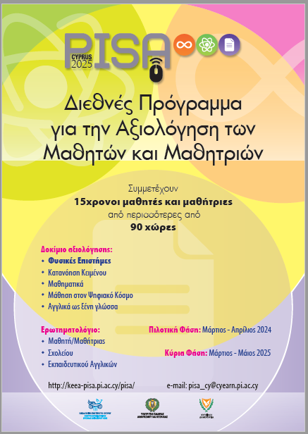 Περισσότερες πληροφορίες για το Πρόγραμμα PISA μπορείτε να βρείτε στην ιστοσελίδα του ΟΟΣΑ (www.pisa.oecd.org).