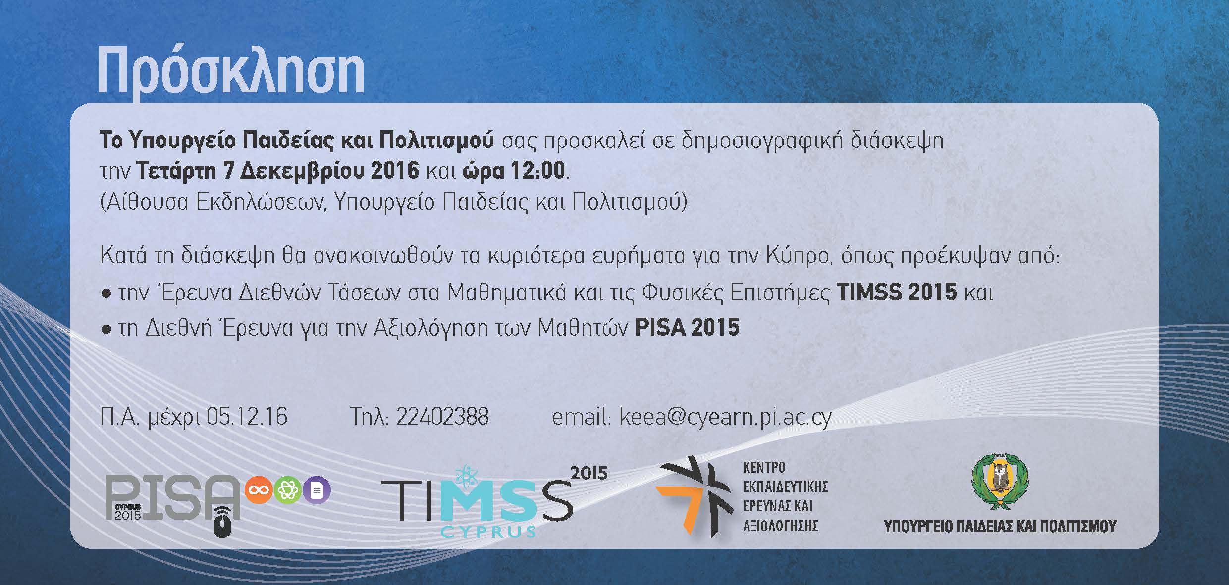Παρουσίαση «Συνοπτικά Αποτελέσματα Προγράμματος PISA 2015» Δημοσιογραφική Διάσκεψη, Υπουργείο Παιδείας και Πολιτισμού, 7 Δεκεμβρίου 2016